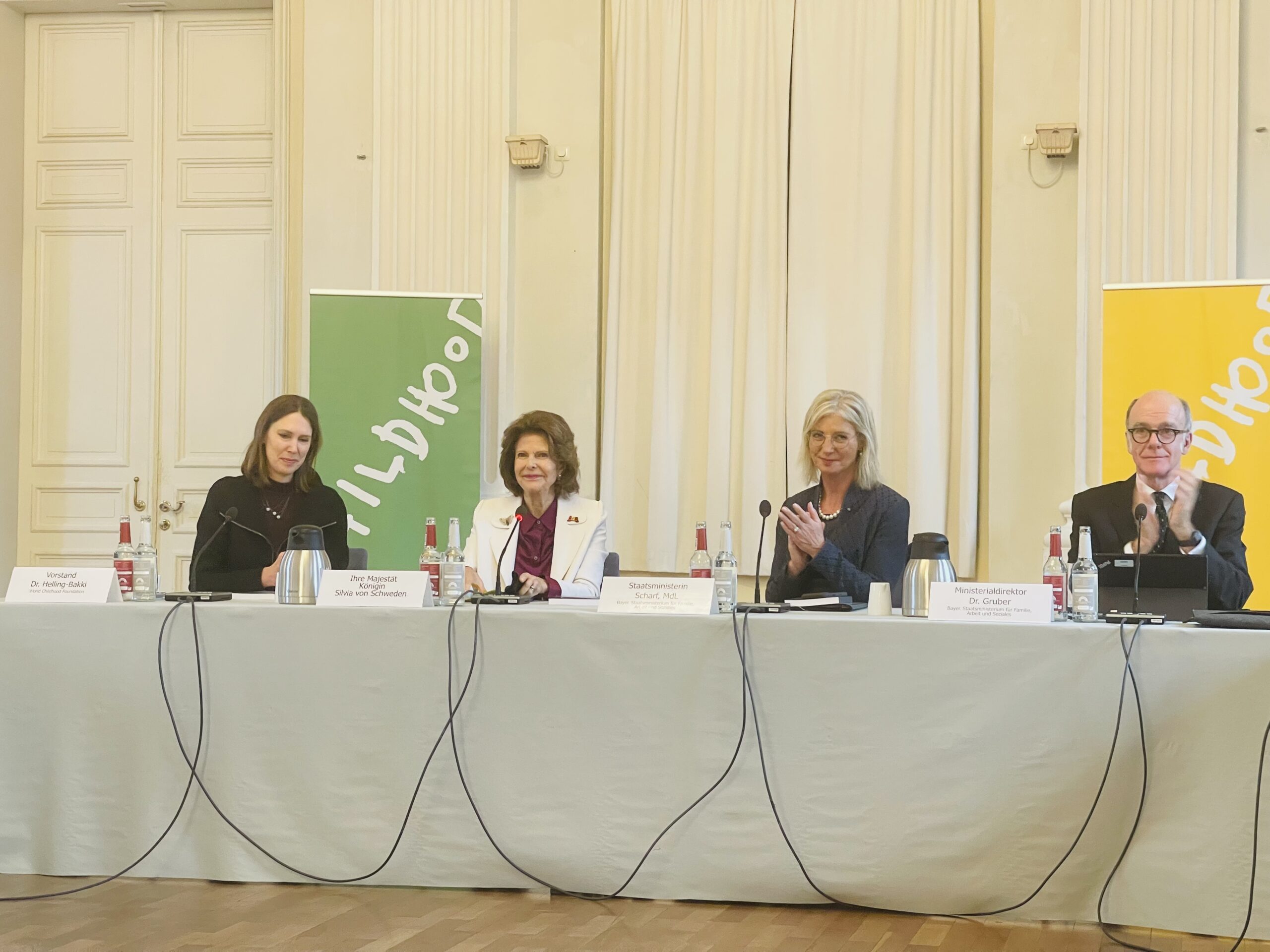 Am heutigen Nachmittag eröffnete Ihre Majestät in der Residenz München den Runden Tisch der World Childhood Foundation unter dem Titel Gemeinsam für die Kinder: Weiterentwicklung des Childhood-Haus-Konzepts und interdisziplinärer Kooperationen im Kinderschutz. Vertreter:innen aus Politik, Justiz, Medizin, Psychologie, Jugendhilfe, Polizei und Wissenschaft sowie Erfahrungsexperten kamen im Max-Joseph-Saal zusammen, um aktuelle Herausforderungen und Perspektiven für den Kinderschutz in Bayern zu diskutieren.