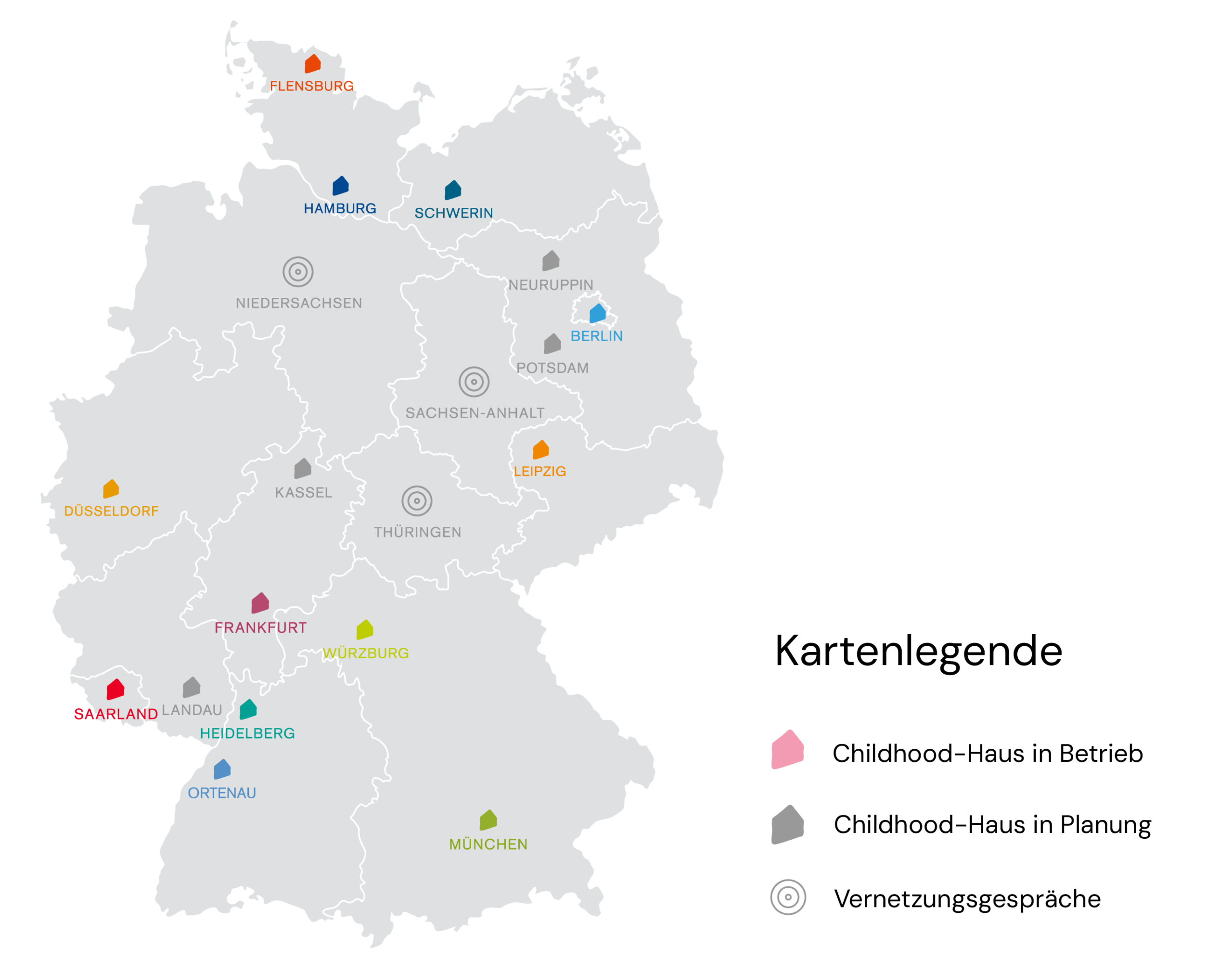 Unser Ziel ist es in den kommenden Jahren in jedem Bundesland mindestens ein Childhood-Haus zu eröffnen. Je mehr Childhood-Häuser es gibt, desto besser ist die Versorgung für Kinder, die körperliche oder sexualisierte Gewalt erlebt haben. Davon sind wir überzeugt.